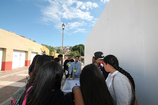 | Students trying out tagging. Guanajuato, GTO. 10/19/17. Photo by Caitlin Bruce. |
